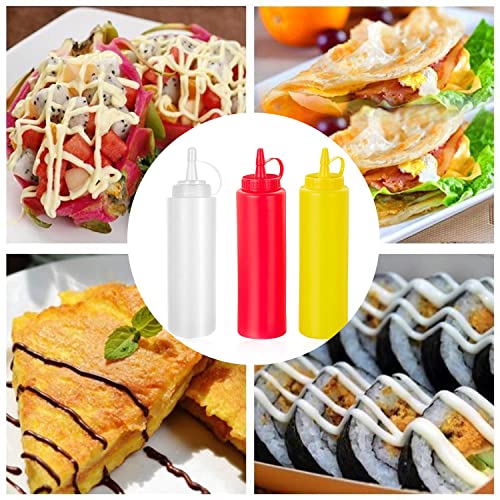 【La confezione include】 La confezione contiene 6 bottiglie da spremere, ciascuna con una capacità di 240 ml, 19 cm di altezza, 3 colori trasparenti, rossi, gialli.Le nostre bottiglie di salsa sono facili da lavare e pensate per essere riutilizzate più e più volte. (Non utilizzabile nel microonde).