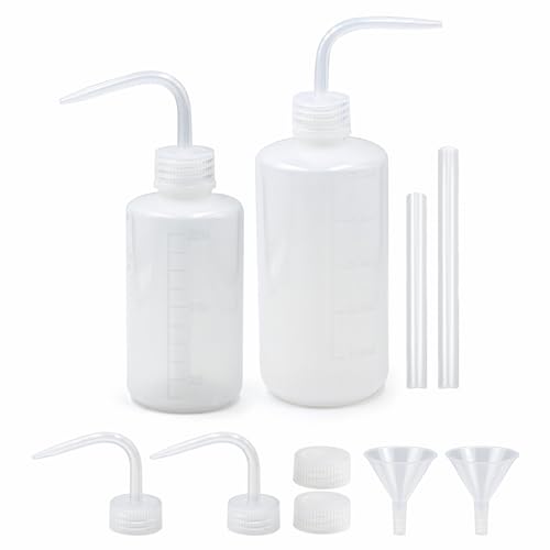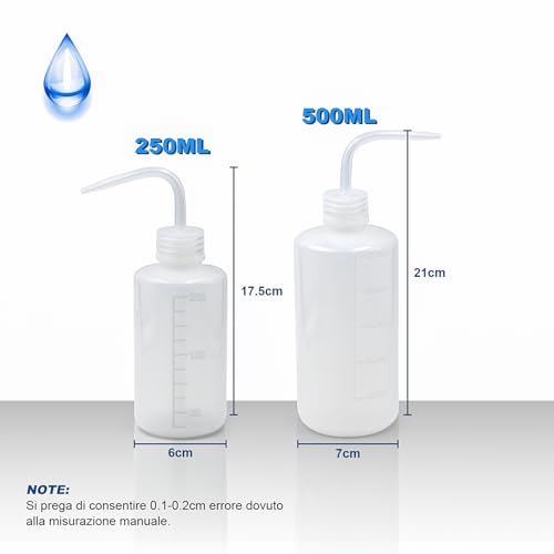 2Pcs Bottiglia di lavaggio trasparente, 250ml/500ml Bottiglia di spremitura con imbuto a scala Narrow Bocca Di Plastica Trasparente Spruzzatori Dispenser per Giardinaggio, casa, laboratorio (H01)