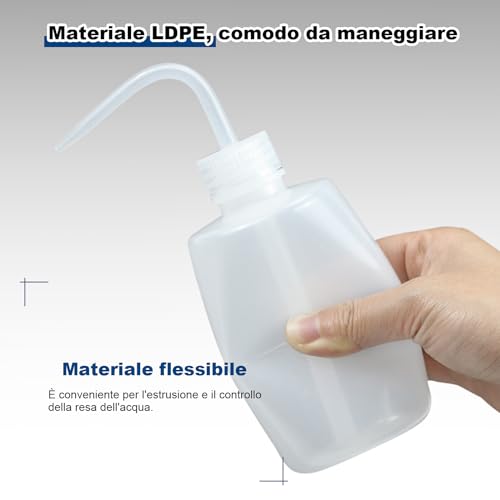 【Bottiglia di lavaggio in LDPE】La bottiglia di lavaggio è realizzata in materiale LDPE di alta qualità, che le conferisce una buona durata, duttilità ed elasticità. Sicuro da usare, non si deforma con la maggior parte dei solventi. Inoltre, il tappo e l'imboccatura sono stampati in un unico pezzo, per evitare perdite.