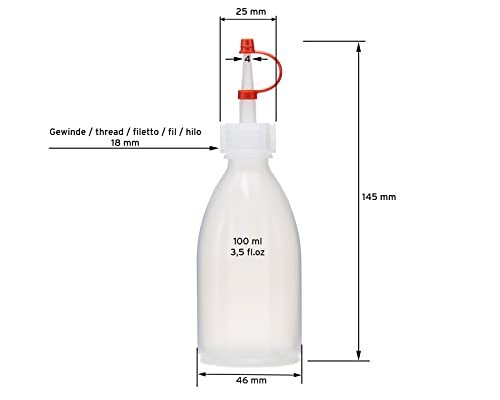 10x 100 ml bottiglia di plastica di LDPE bottiglia di laboratorio bottiglia di guarnitura bottiglia di spray bottiglia con punta di dosaggio per cucina laboratorio hobby