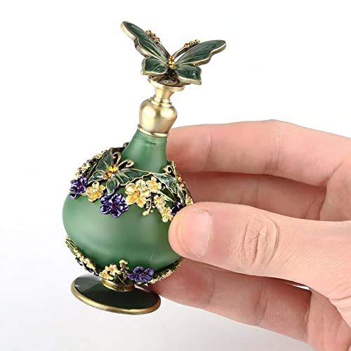 Bottiglia di profumo vuota ricaricabile, utilizza mestiere galvanico, colore verde elegnet con coperchio a farfalla, stile vintage, nobile e affascinante, uno strumento di bellezza anche un gadget decorativo, meravigliosa collezione di bottiglie.