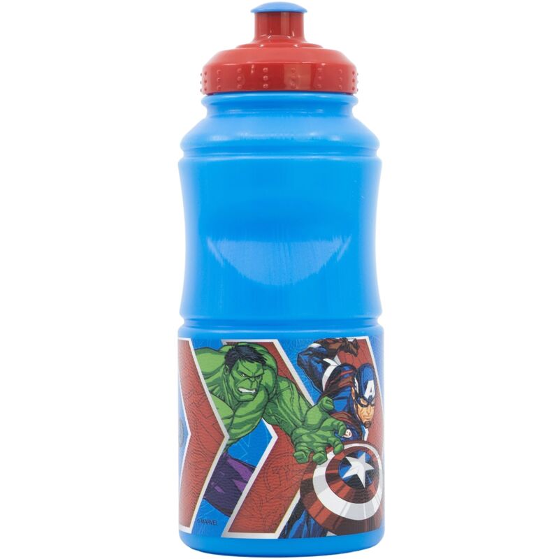 Borraccia riutilizzabile per bambini. Chiusura con sistema antigoccia. Capacità di 380 ml e decorata con i personaggi più famosi del mondo del cinema e della televisione.