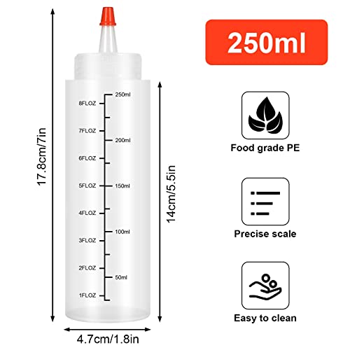 【Bottiglie da Salsa】 La confezione contiene 2 bottiglie da spremere, ciascuna con una capacità di 250 ml, 19 cm di altezza e 5 cm di diametro, colori trasparenti. Le nostre bottiglie di salsa sono facili da lavare e pensate per essere riutilizzate ancora e ancora. (Non microonde).