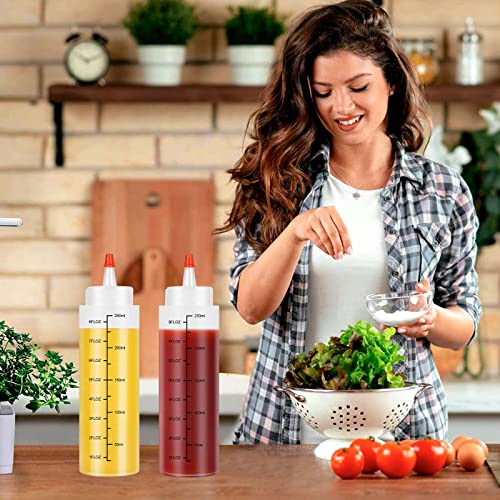 【Indicatore di misurazione】 Le bottiglie spremute per cucinare hanno un indicatore di misurazione sul lato delle bottiglie, questo serve per l'erogazione controllata del condimento e per sapere quanto le hai riempite. Facile da versare, etichettare e identificare i tuoi condimenti preferiti o qualsiasi altro liquido.