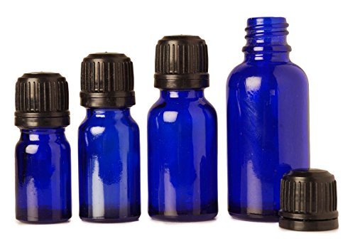 Bottiglia di vetro blu cobalto con contagocce nero tipo “Euro”