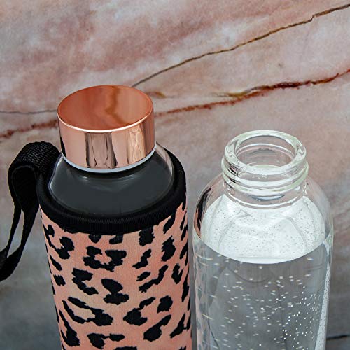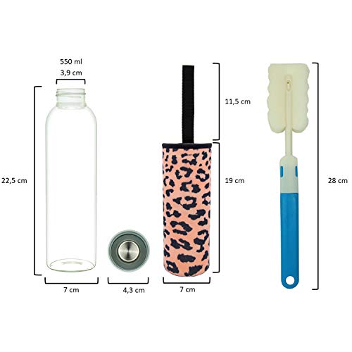 T&N Bottiglia in vetro da 550 ml, con custodia in neoprene, bottiglia per bottiglia d'acqua a prova di perdite, in vetro borosilicato più spesso, adatta per anidride carbonica, design sottile