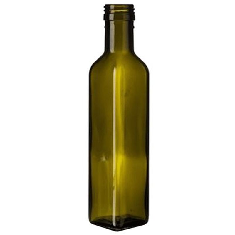 Specifica per la conservazione di olio. Realizzata in vetro adatto per prodotti alimentari. Imboccatura 'tappo a vite'. Colore uvag. 750 ml - tappo 31,5x18