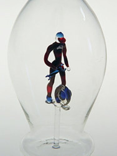 Bottiglia di vetro trasparente, caraffa di vetro chiaro e soffiato con la bocca, con il meccanico d'autorimessa, garagista di vetro colorato dentro, contenuto 0,5 litro e altezza circa 30 centimetri, design Oberstdorfer Glashütte