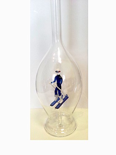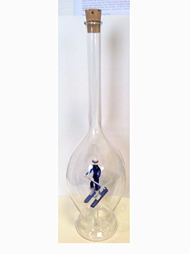 Bottiglia di vetro trasparente, caraffa di vetro chiaro e soffiato con la bocca, con sciatore di vetro colorato dentro, per riempire, contenuto 0,5 litro con altezza circa 30 centimetri, progetto Oberstdorfer Glashütte