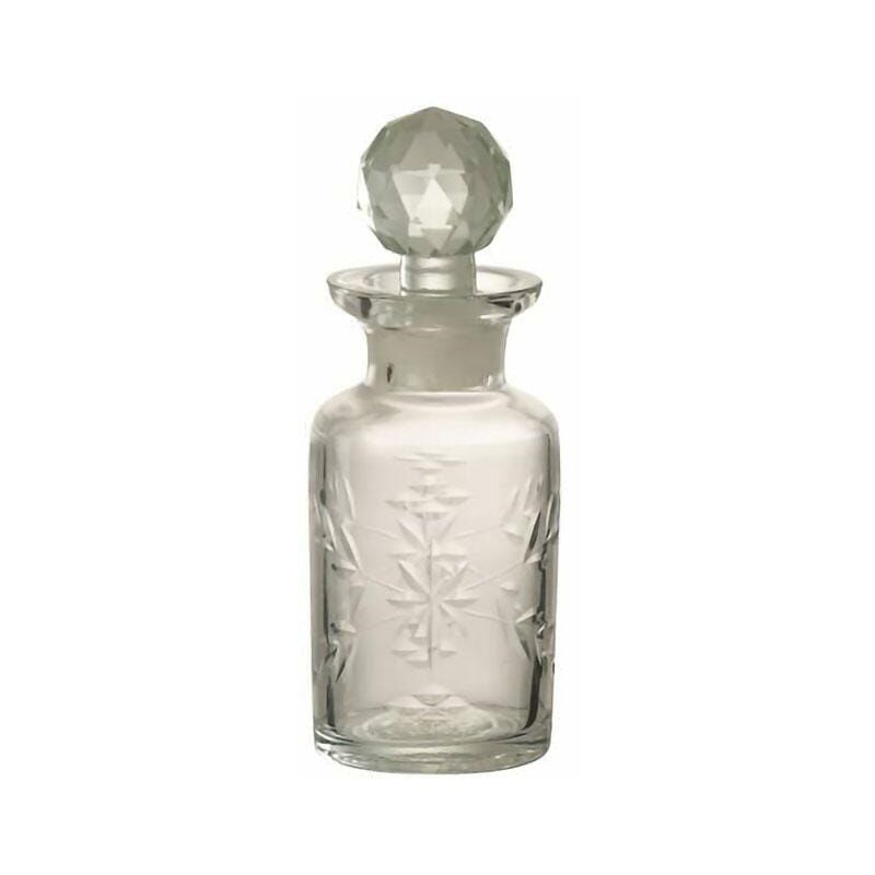 Bottiglia in vetro trasparente con decori incisi fatti a mano e tappo in vetro, tre modelli Materiale: Vetro Lavorato a manoPer le festivitàDimensioni: cm.5x5x15h. Una bottiglia decorativa La bottiglia decorata dorata è perfetta per servire piccole quantità di bevande durante il periodo festivo.Puoi usarli anche come vasi decorativi e creare fantastiche composizioni.