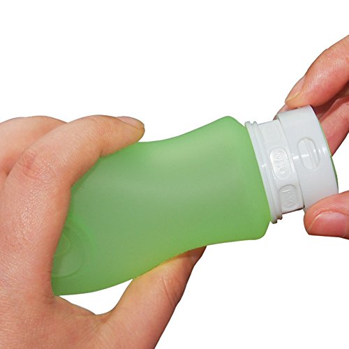 Bottiglia da viaggio in silicone, antigoccia, senza BPA, da viaggio, ricaricabile, contenitore approvato TSA, set di 4. multicolore Pink Orange Purple and Green large