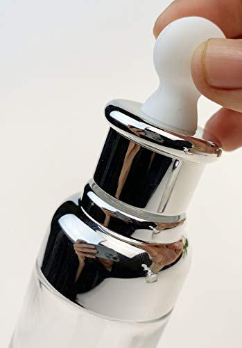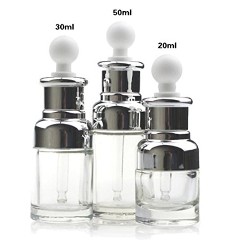 1 bottiglia vuota in vetro trasparente da 50 ml, per oli essenziali, oli essenziali e fluidi, flaconcino con pipetta in vetro contagocce (argento)