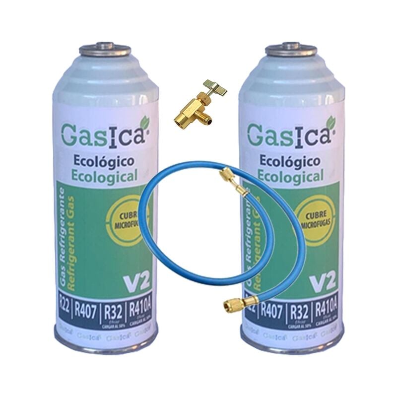2 BOTTIGLIE + 1 valvola di servizio. P> 226Gr V2 REFRIGERANTEÊECOLOGICO. SOSTITUTO R22, R32, R410a R407c EFFICIENTE p> gas refrigerante Gasica 226Gr. Per i sistemi con R22 - R32 - R407c - R410a - 100% ‡ nico org p>. gas è un nuovo norteamericanaÊSUMGAS eco-tecnolog'a Ecol a base di logiche. Il suo F-FORMULA (HC