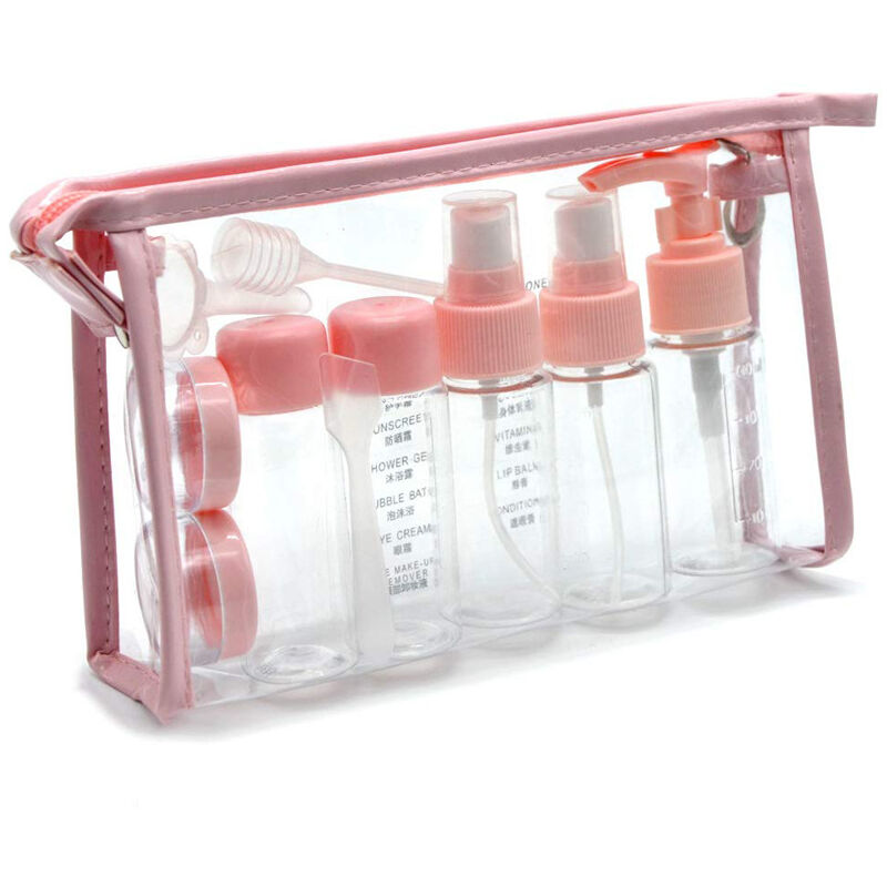 Cosa c'è nella confezione: 2 flaconi per lozione da 40 ml, 2 flaconi spray da 40 ml, 2 flaconi con chiusura a scatto da 40 ml, 2 vasetti per crema da 10 g, 1 pipetta, 1 imbuto, 1 raschietto per il trucco, 1 etichetta per scrivere e 1 borsa impermeabile Etichette adesive: Include etichette scritte per contrassegnare e differenziare i flaconi da lozioni, shampoo, balsami, bagno schiuma, ecc. GARANZIA DI SICUREZZA: Realizzato in resistente polietilene tereftalato (PET) impermeabile, approvato TSA, leggero e innocuo Portatile: Bottiglia ben organizzata in una borsa facile da trasportare. Portali dove vuoi, come viaggi, viaggi di lavoro, appuntamenti, palestre, hotel e altro ancora.
