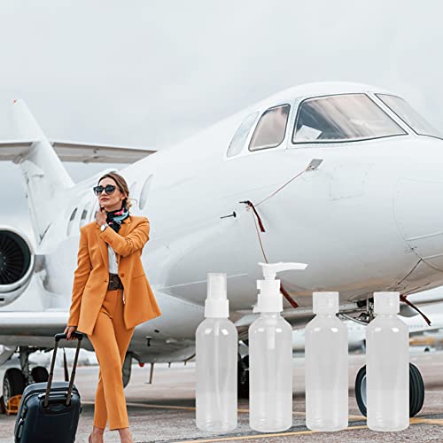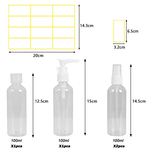 4PCS Bottiglie da Viaggio 100 ml,Flaconi Viaggio Aereo Trasparente Kit da Viaggio Aereo Liquid Flaconi Spray Contenitori per Liquidi Ricaricabili per Lozione, Bagnoschiuma, Shampoo con 2 Etichette