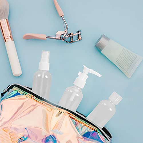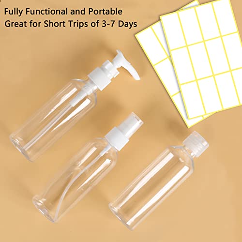 TRAVEL ESSENTIALS:include 2pcs flaconi flip-top, 1pcs flacone spray, 1pcs flacone a pressione, 2pcs foglietti adesivi, sufficienti per soddisfare le tue esigenze durante i viaggi a breve termine, i foglietti adesivi ti consentono di usarli senza confondere i prodotti.