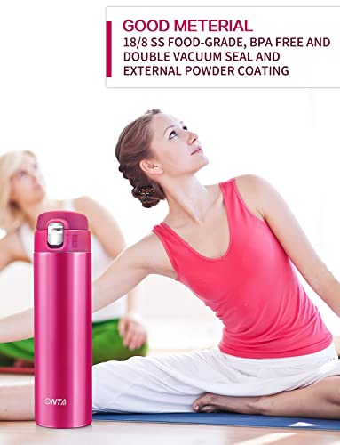 ONTA Bottiglietta Termica, Borraccia Isolata Sottovuoto per Sport, 17OZ/500ML Mantiene Il Fresco per 20H, Caldo 12H Bottiglia in Acciaio Inox e Thermos Tazza caffè a Tenuta Stagna da Viaggio (Rosa)
