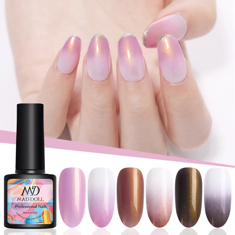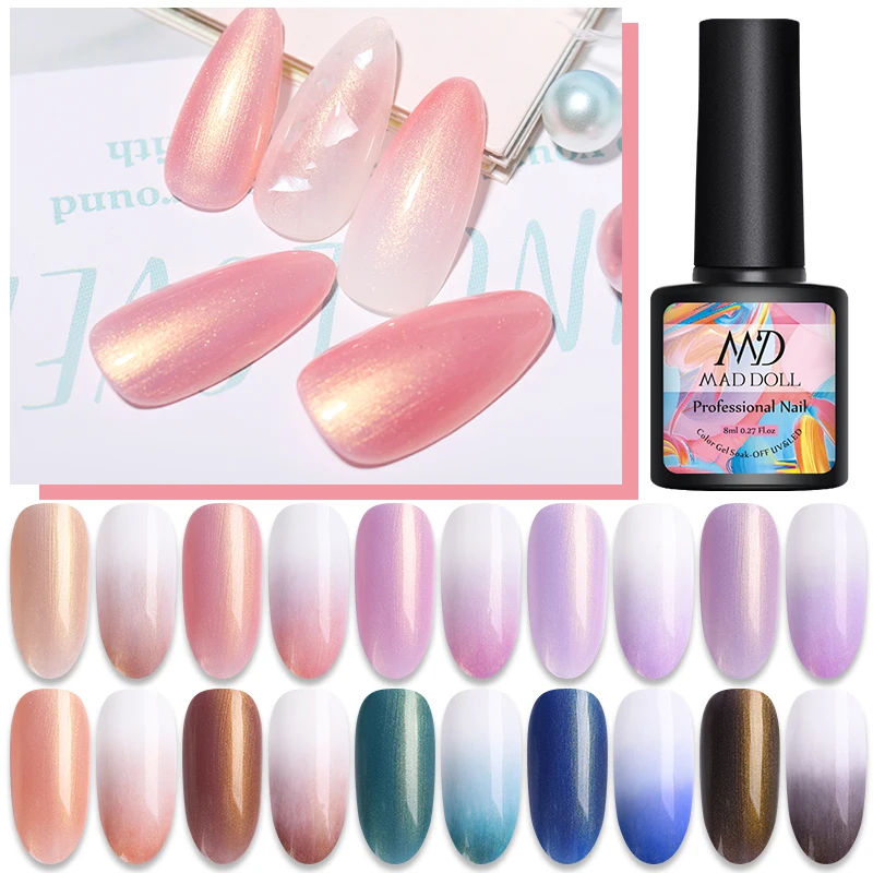 1 Bottle 8ml MAD DOLL Pearly Lustre UV Gel Colorful Soak Off Manicuring Pearl Series Pure-Color Nail UV Gel Polish