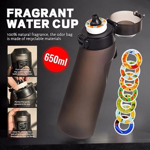 MTSS Air Up Bottle Starter Set, Air Up Pods Flavours 650ML Air Up Bottiglia D'acqua Aromatizzata Bottiglia D'acqua Generica Bottiglia Da Palestra Bottiglia Fitness Black