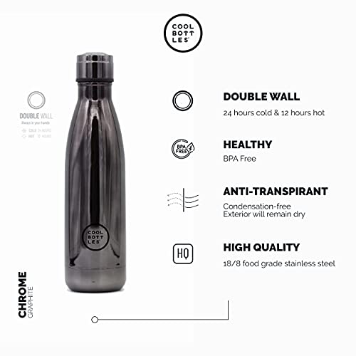 Cool Bottles - Bottiglia d' Acqua in Acciaio Inossidabile - 500 ml - Chrome Graphite - 26,5 x 7 cm - Bottiglia Termica Ermetica - Bevande Fredde 24 ore e Calde 12 Ore - Doppia Parete - Senza BPA