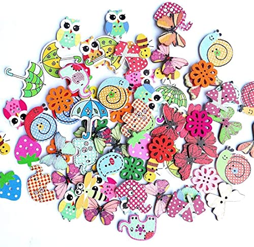 Bottoni di cartoni animati misti: i bottoni di legno hanno una varietà di forme di fiori e frutti di animali (le forme carine vengono consegnate a caso). I pulsanti colorati e squisiti possono soddisfare le tue diverse esigenze e i bambini li adoreranno.