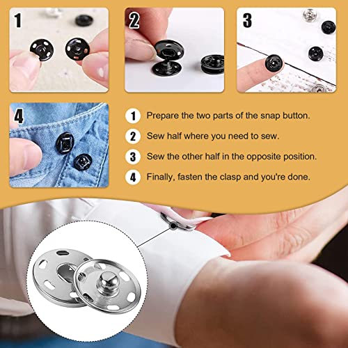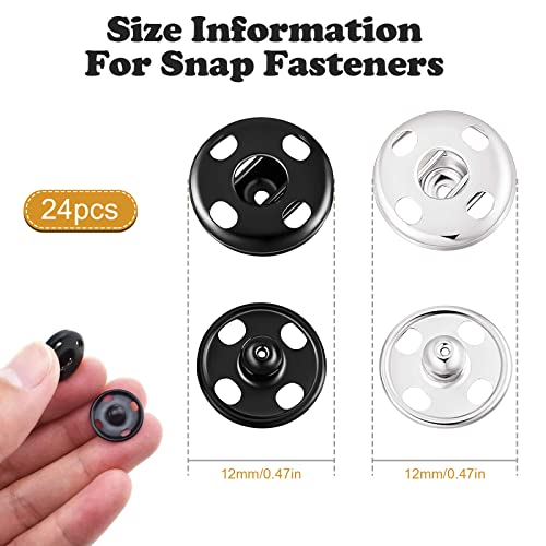 Set di 24 bottoni automatici da cucire, in metallo, colore nero, argento, bottoni automatici in metallo, per vestiti, cucito, borsa, artigianato, 2 colori (12 mm)