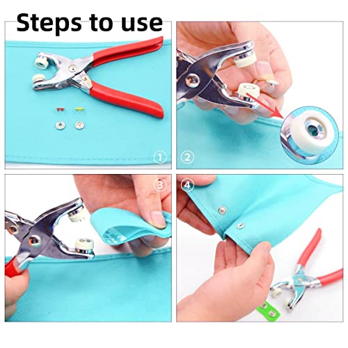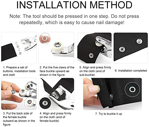 【Pulsante a scatto avvitabile, facile da usare】Basta seguire le istruzioni, inserire la fibbia del bambino, la fibbia femmina e la fibbia a cinque griffe nelle pinze nella giusta direzione, quindi premere la maniglia per perforare il tessuto rispettivamente in due punti, semplice e salva manodopera, è lo strumento di restauro perfetto.