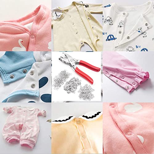 Bottoni Automatici in Metallo,Strumenti a Bottone,Bottoni Automatici a Pressione,Doppio Testa Borchie,100 Set Rivetti a Pressione Bottoni con Pinza per Borse Giacche Jeans Artigianato
