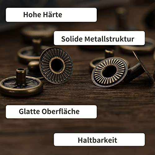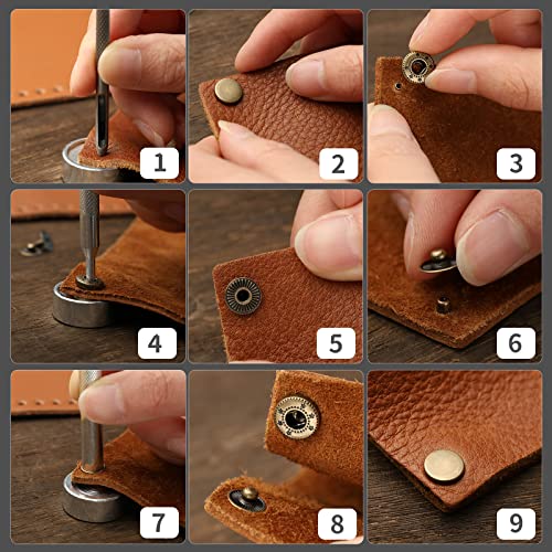 Ampia applicazione: questi bottoni automatici in pelle possono essere utilizzati per realizzare artigianato in pelle, vestiti, scarpe, cappelli, tela, cinture, zaini, ecc. È possibile soddisfare le vostre diverse esigenze di decorazione in pelle o le esigenze di riparazione dei vestiti.