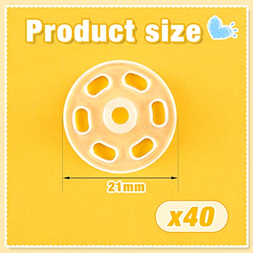 40 Paia Bottoni Automatici Plastici Bottoni Trasparenti Bottoni Automatici Invisibili da Cucire Bottoni Automatici da Cucire Bottoni a Pressione Plastici Trasparente (21 mm/ 0,83 Pollici)