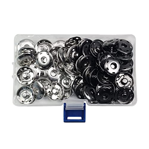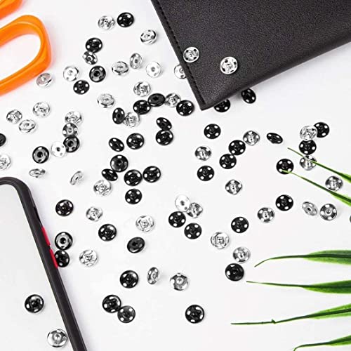 80 Pcs di Bottoni Automatici a Pressione da Cucire in Metallo 2 Misure (0.6cm, 0.7cm, 0.8cm, 1.2cm) Argento e Nero Chiusura a Scatto per Giacche, Bambole, Cucito, Cuscini, Gonne, Artigianato Fai da Te