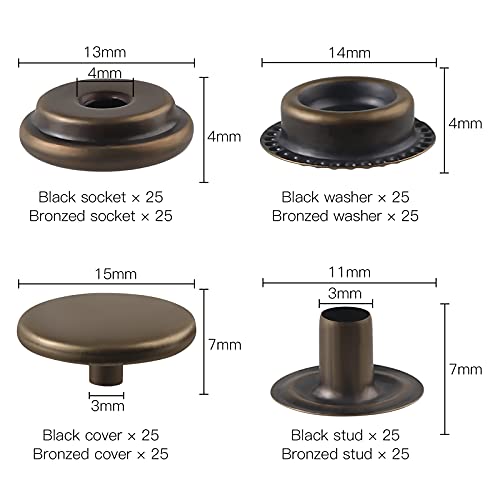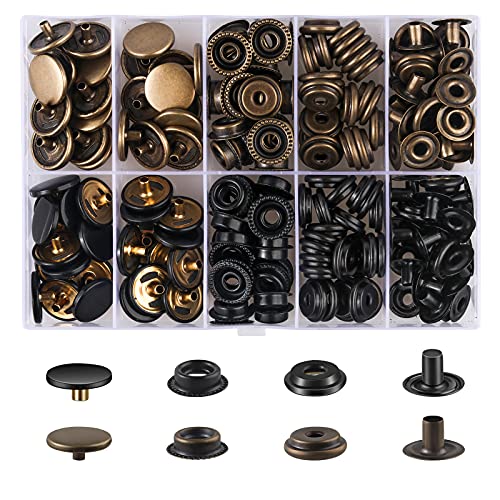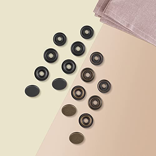 Set di 50 Bottoni Automatici a Pressione, MSDADA Metallo Bottoni a Pressione Abbigliamento, per Fissaggio a Scatto per Borse, Jeans, Vestiti, Tessuto, Artigianato in Pelle(Nero+Rame)