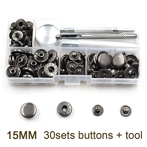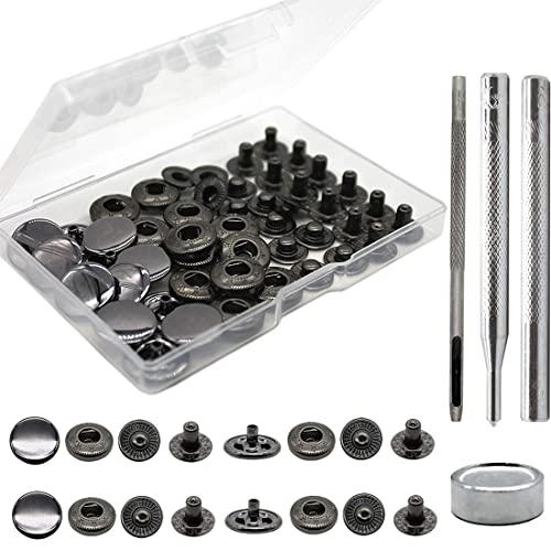 LEEQ Bottoni Automatici a Pressione Scatto in Metallo - 12 Set 5 mm Kit a Scatto in Pelle Resistente Cinghie a Scatto 4 Strumenti Installazione Rivetti Snap per Sbbigliamento Pelle Jeans Fai Da Te