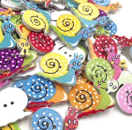Contenuto della confezione: 50 bottoni in legno colorati a forma di lumaca.