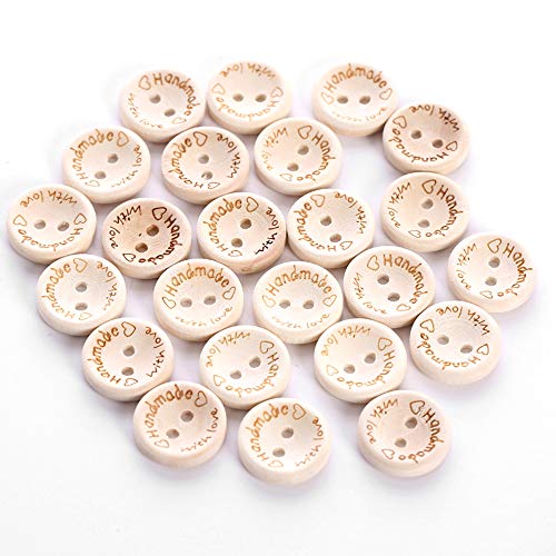 N-K Bottoni in legno con scritta "Handmade with Love", 1,5 cm, 100 pezzi