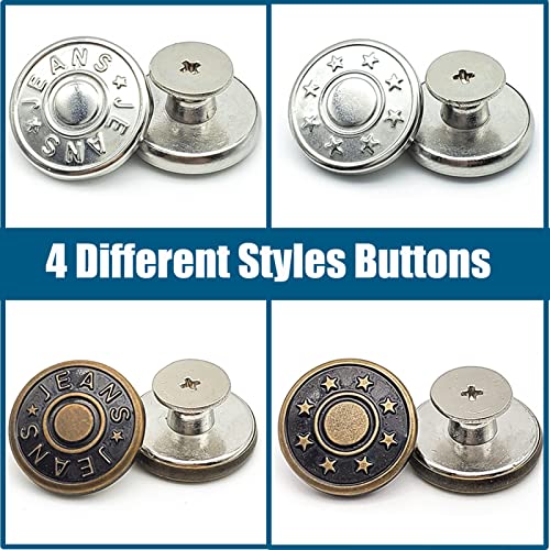 Bottoni Rimovibili Jeans 12 Pezzi, 17 mm/0,67 in Senza Cuciti Bronzo e Argento Bottone Removibile per Jeans Metallo Bottoni per Jeans con 1 Cacciavite per Abbigliamento in Denim