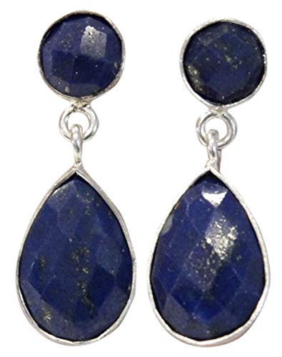 Boucles d'Oreilles Argent Goutte Sertie - Lapis Lazuli