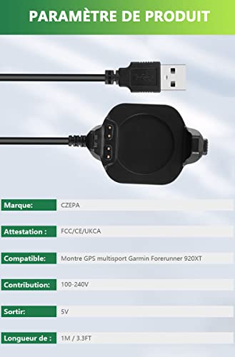 Bouge Caricatore per Garmin Forerunner 920XT, caricatore USB Clip Cradle 100cm Cavo di Ricarica per Forerunner 920XT, Fitness Tracker Smartwatch Accessori