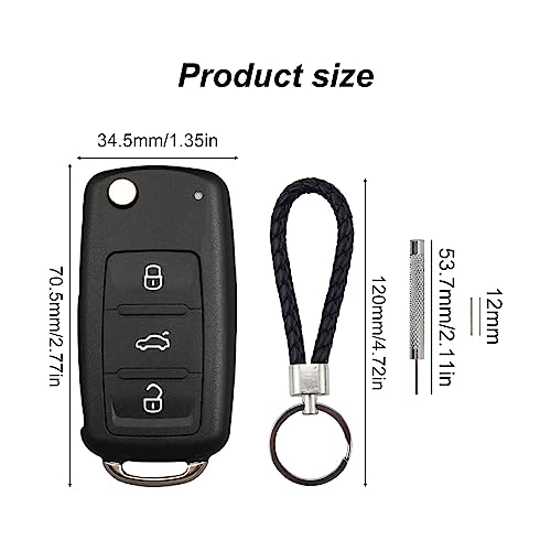 BouGPeng Guscio Chiave Compatibile con VW Golf 5 6 MK6 Polo Touran Tiguan Touareg Passat Seat Skoda Jetta Beetle 3 Tasti Telecomando Custodia Cover per Chiave Auto con Portachiavi in Pelle