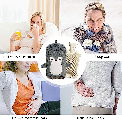 Boule Acqua Calda Comfort Morbida 2L, Borse Acqua Calda Pelosa con Coperchio, Borsa Dell Acqua Calda Grande, Bottiglia di Acqua Calda Pinguino, Borsa Acqua Calda Scalda Anti Perdita Animali Regalo