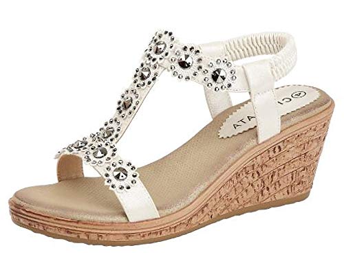 Boulevard - Sandalo da donna, con elastico e fiori, Bianco (bianco), 38 EU