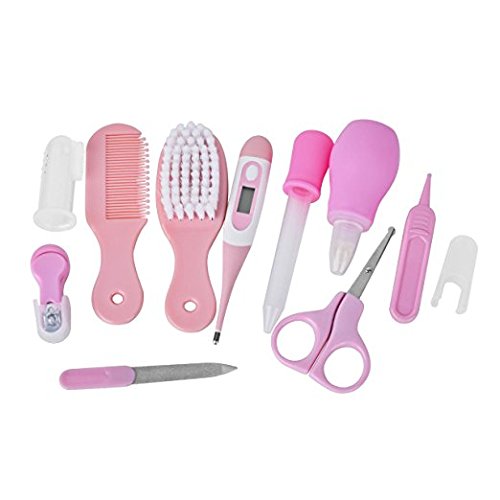 BoundleJoy 10 Indispensabile Grooming Kit pettine della spazzola bambino Nail Clippers Scissors(Rosa)