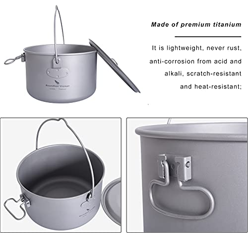 Boundless Voyage Camping Titanium Hanging Pot con manico pieghevole Picnic Escursionismo Grande Capacità Bollitore Pentole 1.3L 1.95L 2.9L (YTi2043C-1300ml)