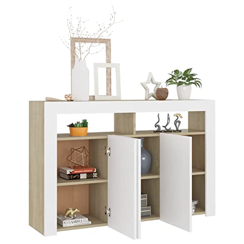 Bounv Credenza Soggiorno, Credenza Moderna Cucina, Mobile Soggiorno, Credenza con Luci a LED Bianco e Rovere Sonoma 115,5x30x75 cm
