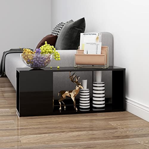 Bounv Libreria Scaffale, Libreria Bassa, Tavolino Divano Laterale, Mobile TV Nero Lucido 80x24x32 cm in Truciolato