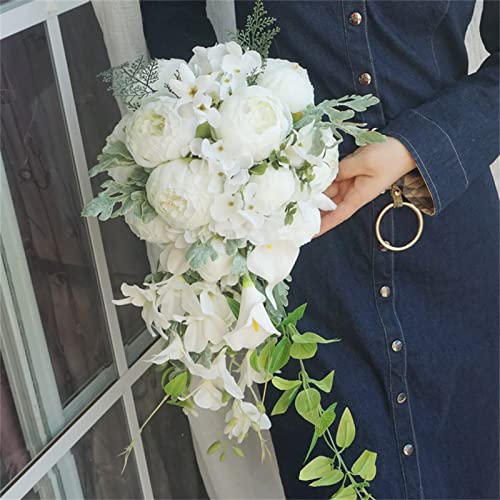 YYHH Bouquet di Fiori da Sposa Artificiali con Nastro Rose Bianche Ortensie Banches Verdi per Bouquet da Sposa Centrotavola per Feste di Matrimonio Decorazioni per La Casa