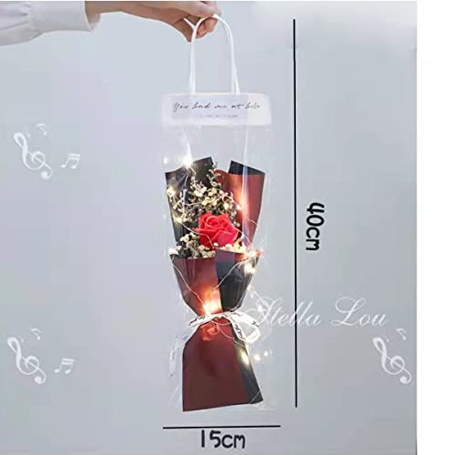 Questo bouquet LED girasole artificiale creativo è realizzato con fiori di sapone ed è fatto a mano. Dimensioni del sacchetto regalo: 35 * 25 * 15 cm. Con una confezione squisita, è un regalo molto premuroso per la persona amata.