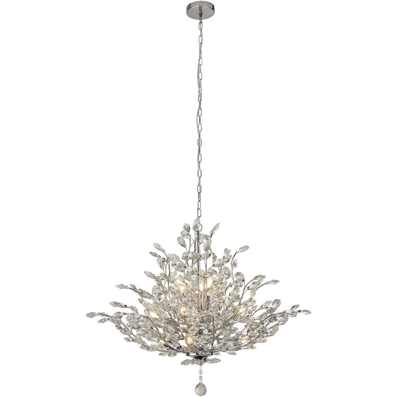 Searchlight Bouquet Pendente Cromato 11 Luci, Vetro Cristallo | Finitura: Cromata, Trasparente | Materiale: acciaio dolce, vetro | Grado di protezione IP: IP20 | Altezza: 62 cm | Altezza massima: 150 cm | Lunghezza: 78 cm | Larghezza: 78 cm | Tipo di lampada: E14 | N. di lampade: 11 | Lampadina inclusa: no | Dimmerabile: Sì - Sono necessarie lampadine dimmerabili | Peso: 8,7 kg | Potenza (max): 40 W