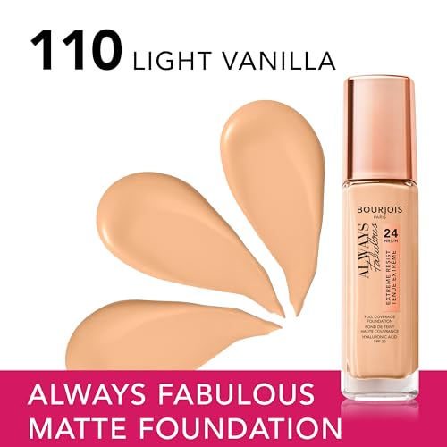 Bourjois Always Fabulous Fondotinta Coprente Liquido a Lunga Durata con SPF 20, 110 Vanille Clair