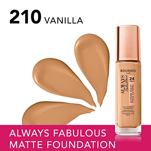 Bourjois Always Fabulous Fondotinta Coprente Liquido a Lunga Durata con SPF 20, 210 Vanille